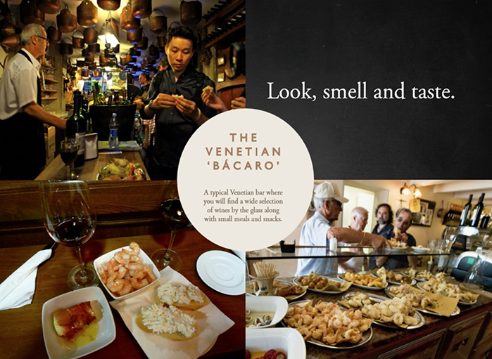 Günün her saati, yılın her mevsimi zengin bir şarap seçeneği eşliğinde lezzetli atıştırmalıklar ve küçük porsiyonlar sunan Bottega Prosecco Barlar, tipik birer Venedik barıdır. Müşterilerine kişisel damak tatlarına uygun içki alternatiflerini hazırlayarak atıştırabilecekleri, aile samimiyeti sunan küçük ve eğlenceli bu mekanlar, İtalyan dokunuşuna sıcak bakan işletmelere hitap edecektir.