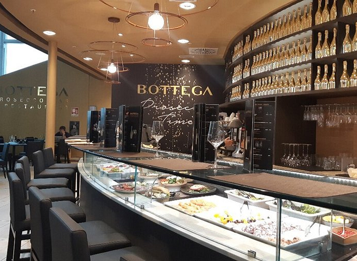 Kendi konseptleri olan ilk Bottega Prosecco Bar 2014 yılında Viking Line Cindrella yolcu gemisinde, ertesi yıl Intercontinental tarafından Abu Dabide hayata geçmiştir. İngilterenin de katılımıyla iki yılda mağaza sayısı üçe çıkmıştır.